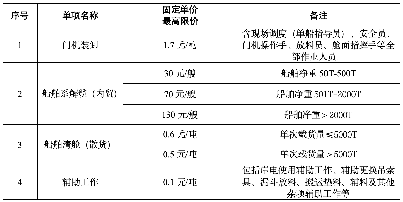 2、招標(biāo)內(nèi)容:萬噸級通用碼頭4#泊位裝卸作業(yè)、船舶清艙業(yè)務(wù)外包服務(wù)包括(包括但不限于):射陽港4#通用泊位的裝卸搬運:含現(xiàn)場調(diào)度(單船指導(dǎo)員)、安全員、門機操作手、放料員、艙面指揮手等全部作業(yè)人員(包括招標(biāo)人提供:2臺門機、2臺漏斗;投標(biāo)人自備:裝載機、運輸車輛、通勤車輛等設(shè)備操作);輔助工作:岸電使用輔助工作、輔助更換吊索具、漏斗放料、搬運墊料、輔料及其它雜項輔助工作;船舶清艙:含機械、人工入艙清理(含指揮)、道口至碼頭面區(qū)域的清理工作;船舶系解纜(船舶解、系纜及其輔助工作)等,詳見招標(biāo)需求。招標(biāo)人保留對招標(biāo)范圍進行調(diào)整的權(quán)利。