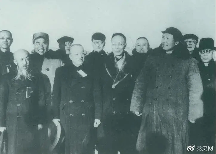 1949年3月,各界人士代表在北京西苑機(jī)場同毛澤東、朱德等留影。