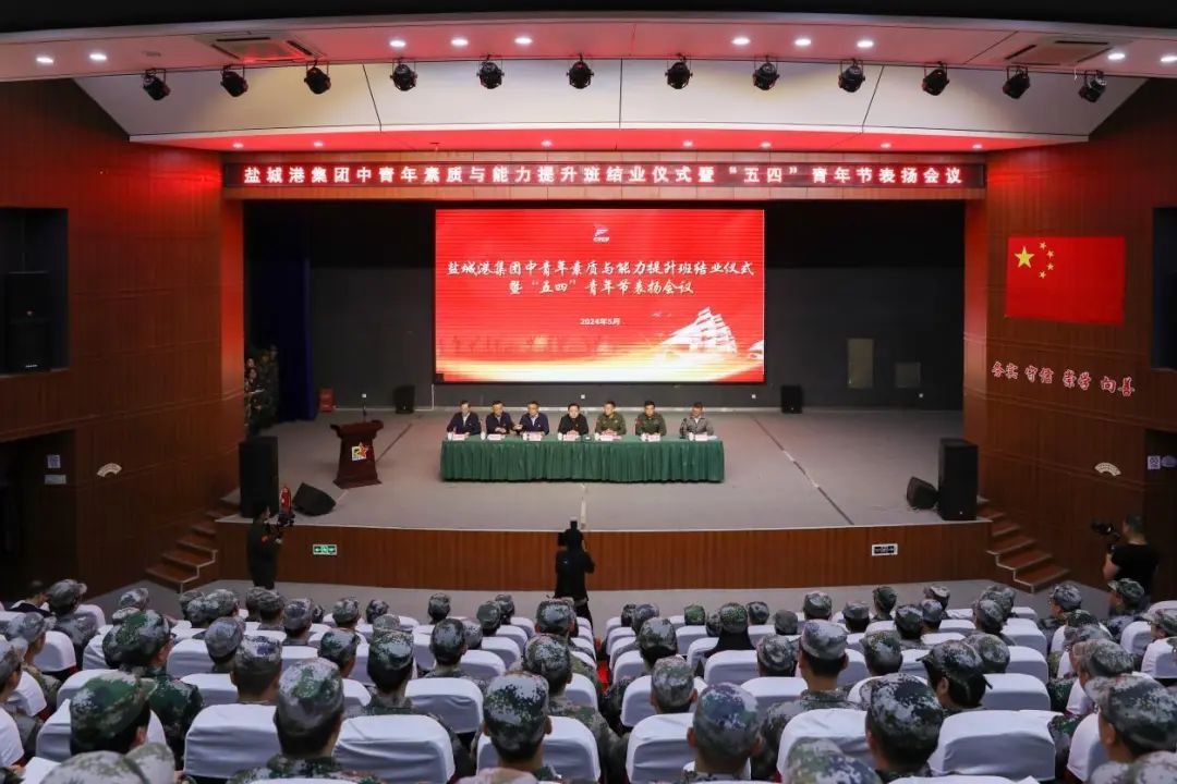 2024年5月4日,鹽城港集團召開中青年素質與能力提升班結業儀式暨“五四”青年節表揚會議。集團黨委書記、董事長周正雄出席會議并講話,戎創軍校校長姚培高出席會議并致辭。集團黨委副書記、董事、總經理陸帥主持會議。