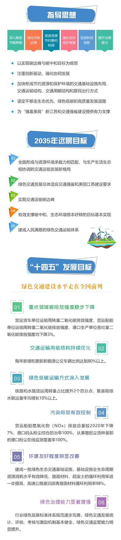 至“十四五”末,全面實現綠色能源消費占比、岸電使用率、鐵路和水路運輸周轉量占比、綠色出行比例“4提升”,營運貨車、營運貨船、港口生產碳排放強度和營運船舶氮氧化物排放總量“4下降”——近日,省交通運輸廳正式印發《江蘇省“十四五”綠色交通發展規劃》(以下簡稱《規劃》),明確提出“十四五”期間全省綠色交通發展按照“11478”的思路開展,實現“4升4降”,形成與資源環境承載力相匹配、與生產生活生態相協調的交通運輸發展新格局,有效支撐我省碳達峰碳中和目標如期實現。