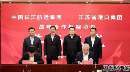 中國長江航運集團黨委委員、副總經理李增忠,江蘇省港口集團黨委委員、副總經理唐洪生代表雙方簽署戰(zhàn)略合作框架協(xié)議。中國長江航運集團、江蘇省港口集團相關部門、單位負責人參加簽約儀式。