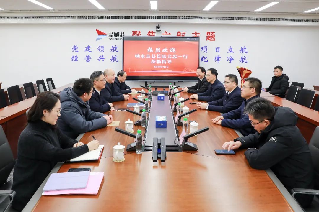 陸帥對陸文忠一行的到來表示歡迎。他說,2023年,鹽城港以推動高質(zhì)量發(fā)展為根本著力點,緊扣“提質(zhì)增效”“項目立航”兩個主題年活動,狠抓落實、務(wù)實高效,首次進入全國沿海港口前20強,提前兩年半完成集團“十四五”既定目標。未來,鹽城將持續(xù)關(guān)注響水縣經(jīng)濟發(fā)展,加大與地方政府之間的溝通力度,狠抓響水港區(qū)項目建設(shè),切實與響水縣委、縣政府心往一處想,勁往一處使,共同為地方經(jīng)濟發(fā)展做出更大貢獻。