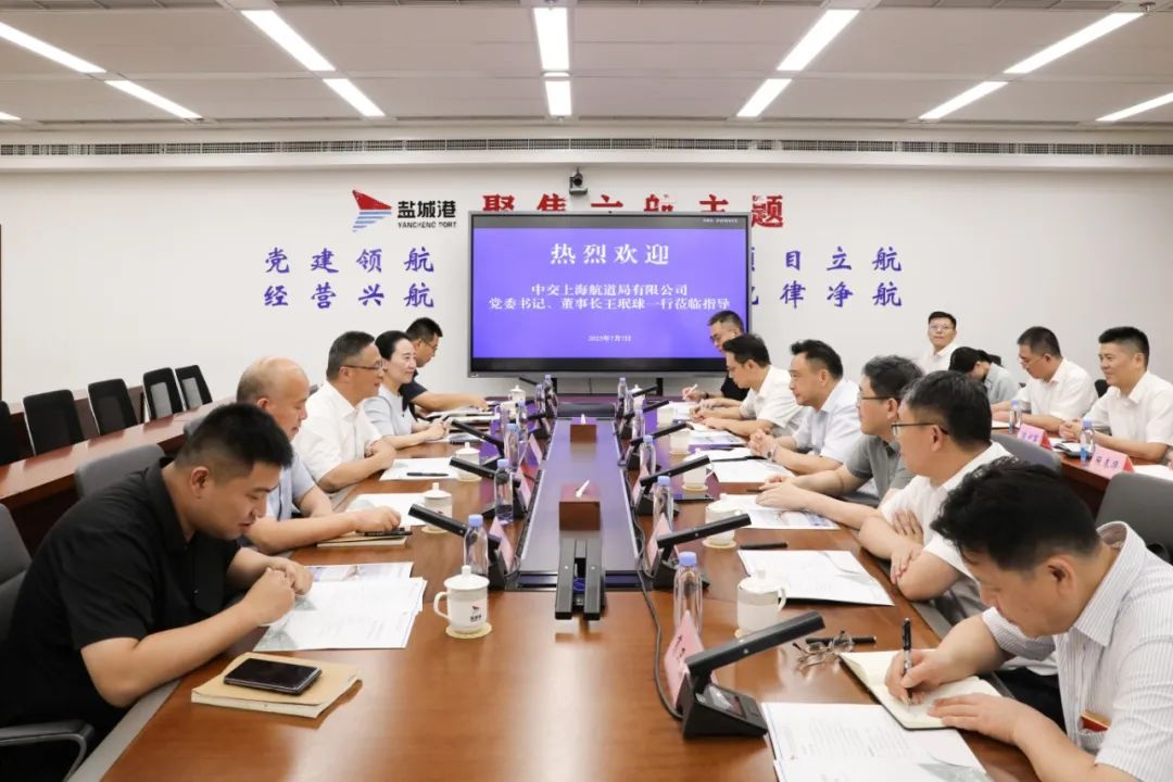 7月7日,集團(tuán)黨委書記、董事長(zhǎng)陸帥會(huì)見中交上航局黨委書記、董事長(zhǎng)王珉球一行,就進(jìn)一步深化合作進(jìn)行交流。集團(tuán)總經(jīng)理袁欣,集團(tuán)黨委委員、副總經(jīng)理丁安廣,中交上海航道局及鹽城港集團(tuán)相關(guān)負(fù)責(zé)同志等參加。