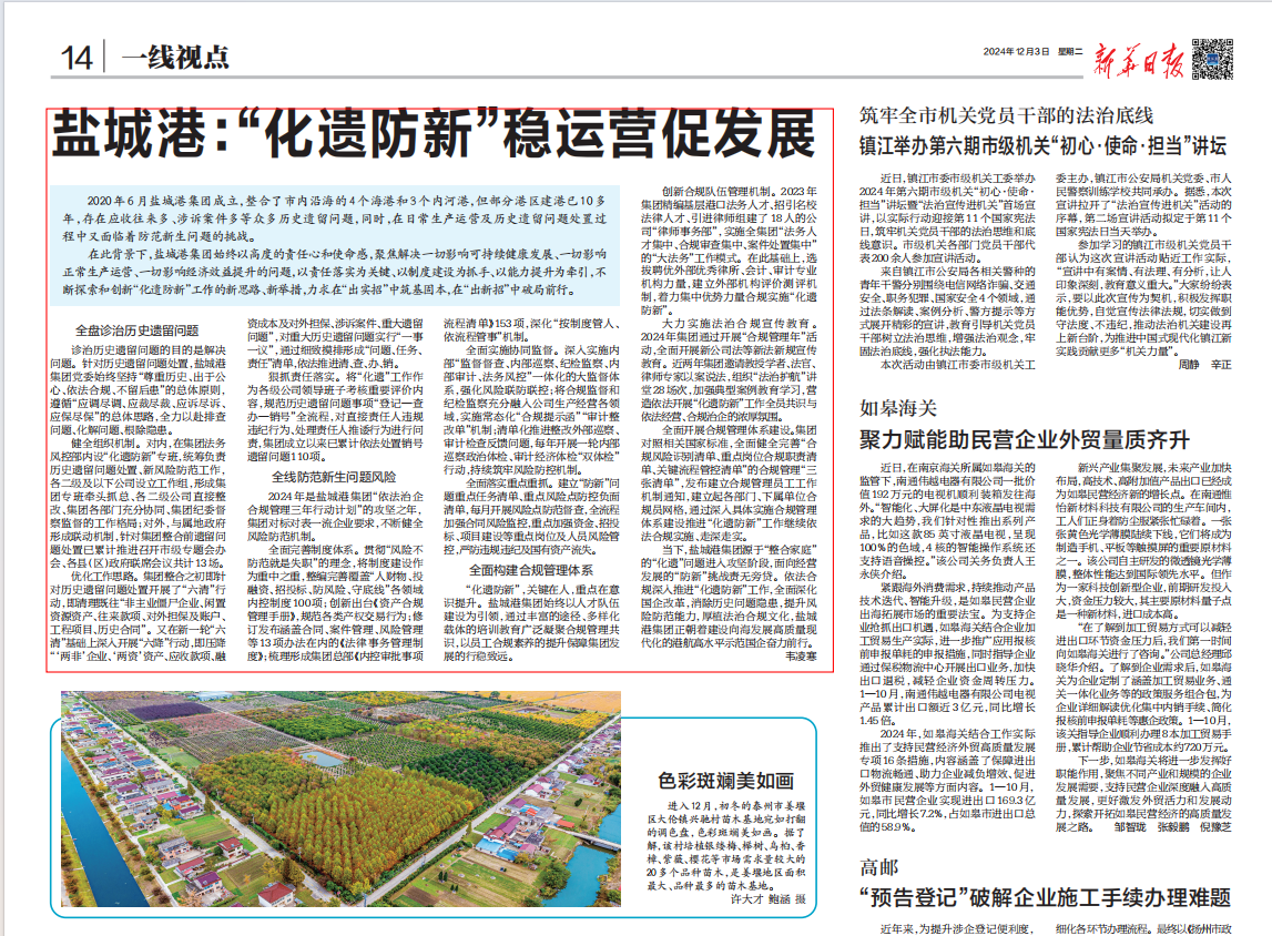 鹽城港集團(tuán)始終堅(jiān)持以制度筑梁、監(jiān)督護(hù)航,推動(dòng)“單點(diǎn)突破”向“系統(tǒng)集成”深度轉(zhuǎn)型,實(shí)現(xiàn)風(fēng)險(xiǎn)防控全域覆蓋、管理效能全面躍升,促進(jìn)合規(guī)管理真正成為企業(yè)高質(zhì)量發(fā)展的內(nèi)生動(dòng)力與鮮明底色。