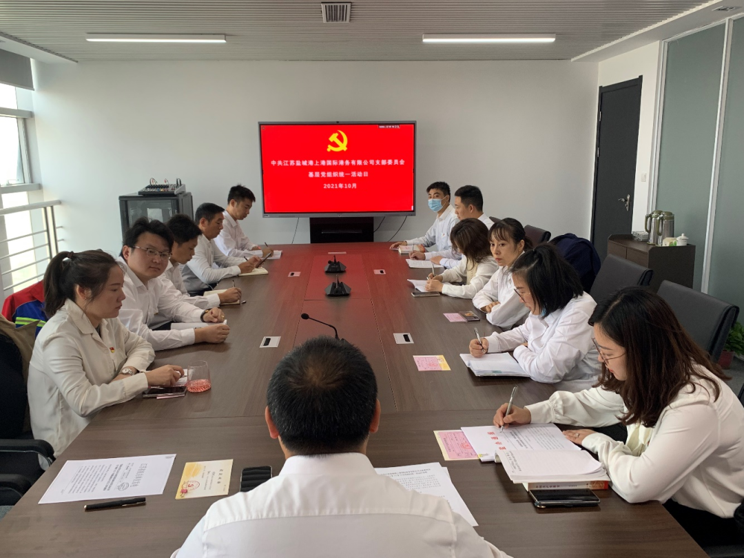 10月29日上午,鹽城港航運(集裝箱)集團組織開展十月份基層黨組織統一活動日活動。鹽城港(航運)集裝箱集團機關全體黨員參加學習,集裝箱查驗專班黨員通過視頻連線方式參加活動。