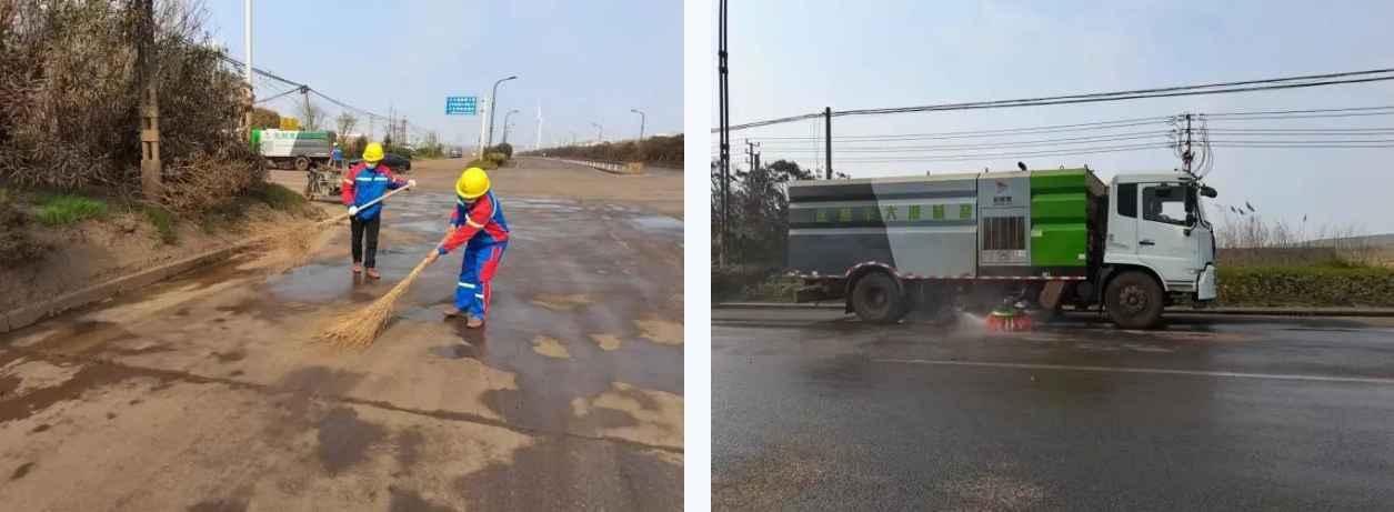 抓好環境衛生整治工作。全面加強生產作業區域揚塵防治,深入推進環境清掃全覆蓋,改進清掃方式,劃分不同清掃保潔片區,實行定區域、定人員、定職責的管理方式;主要干道堅持一天四掃四灑水,減少因道路清掃產生的二次污染;同時加大道路巡查力度,確保作業車輛無拋灑、全覆蓋,保障責任區域環境改善落到實處。
