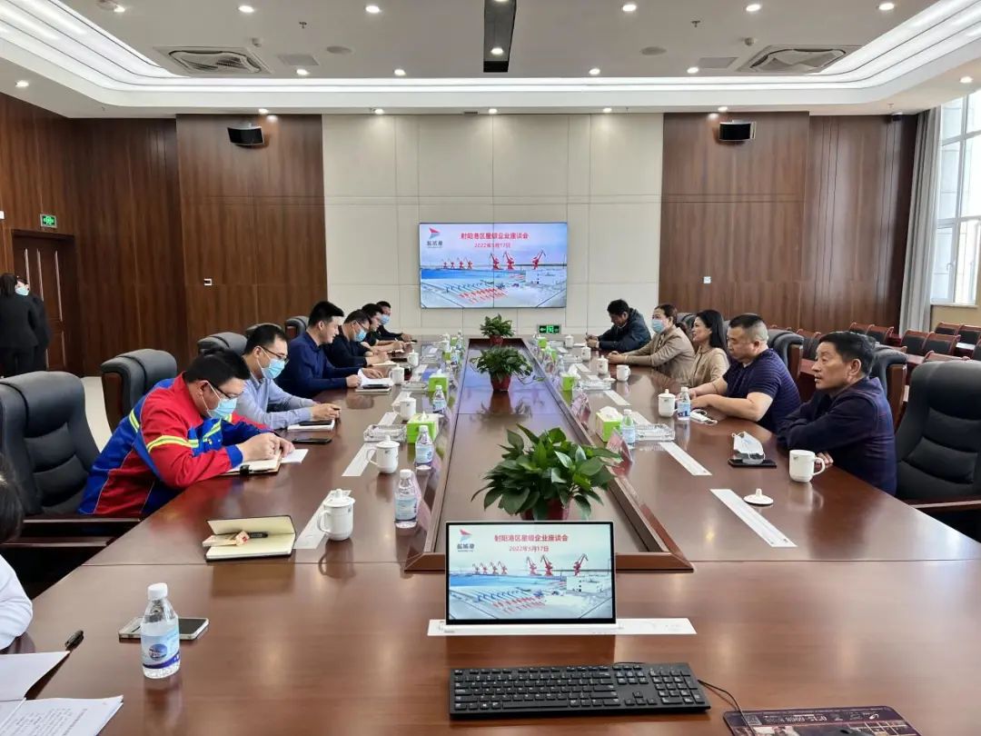 為加強與重點客戶的交流溝通,增強客戶對射陽港區的信心,穩定經營業務,5月17日下午,射陽港區召開星級合作企業座談會,風電、物流、建材等多家企業負責人參加。