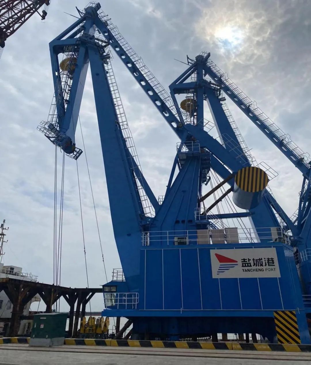 7月7日下午,裝載著兩臺門座式起重機的“東方宏立”輪順利靠泊響水港區重件碼頭小蟒牛作業區6#泊位,響水港區重件碼頭迎來兩位“藍色戰將”。全新的大海藍配色讓人眼前一亮,“藍色戰將”未來將和“紅色家族”一起構成碼頭前沿最靚麗的風景線,為港口生產提質增效注入新動能。
