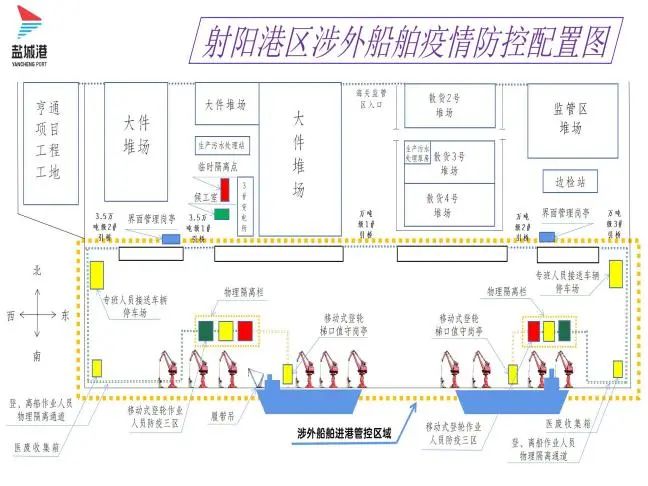 練內(nèi)功,行穩(wěn)筑基“守”規(guī)范。港區(qū)全面貫徹落實(shí)水路口岸疫情防控管理規(guī)定,嚴(yán)格按照涉外碼頭防控標(biāo)準(zhǔn),扎實(shí)推動(dòng)碼頭設(shè)備設(shè)施改造升級(jí)。港區(qū)根據(jù)水路口岸防控組審定的“射陽(yáng)港區(qū)涉外船舶疫情防控配置圖”,改造完成了碼頭“三區(qū)兩通道”、“登輪人員梯口值守崗?fù)ぁ?、“界面管理崗?fù)ぁ钡扔布O(shè)施,擴(kuò)展提升了自有監(jiān)控覆蓋范圍,為射陽(yáng)港區(qū)口岸對(duì)外開放后的涉外船舶“三位一體”管理工作打下堅(jiān)實(shí)基礎(chǔ)。