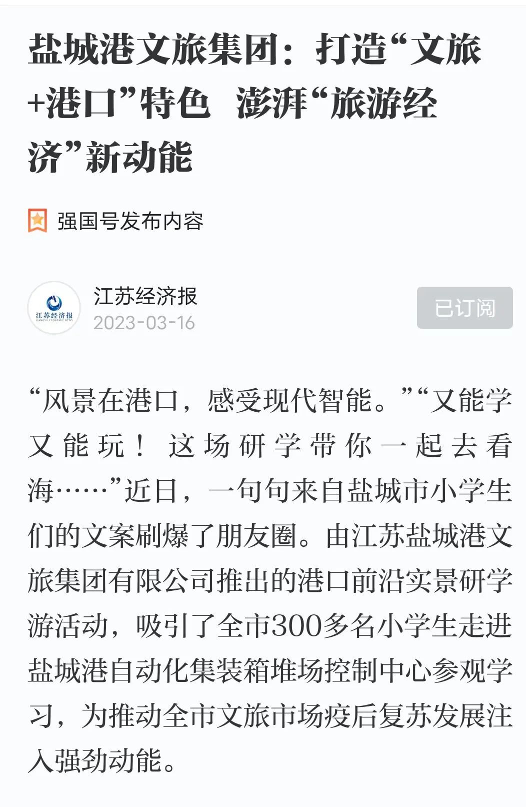 近日,江蘇經(jīng)濟(jì)網(wǎng)、江蘇經(jīng)濟(jì)報(bào)、學(xué)習(xí)強(qiáng)國等多家主流媒體平臺集體為鹽城港文旅集團(tuán)點(diǎn)贊!以《鹽城港文旅集團(tuán):打造“文旅+港口”特色 澎湃“旅游經(jīng)濟(jì)”新動能》為題對文旅集團(tuán)在推動全市文旅市場疫后復(fù)蘇發(fā)展方面取得的成績進(jìn)行了報(bào)道。
