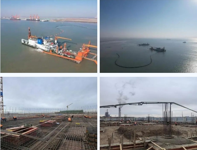 精雕細(xì)琢,匠心之作。項(xiàng)目條線人員爭(zhēng)分奪秒搶工期,推進(jìn)項(xiàng)目“加速跑”,為保障船舶通航能力與通航安全,條線人員緊鑼密鼓推進(jìn)5萬(wàn)噸級(jí)航道港池維護(hù)疏浚工作,日前,絞吸式挖泥船“新海豚”號(hào)火力全開(kāi),每日疏浚量達(dá)6萬(wàn)方,已完成工程總量的50%,預(yù)計(jì)春節(jié)前將全部完工。倉(cāng)儲(chǔ)物流項(xiàng)目現(xiàn)場(chǎng)氣勢(shì)寬宏,各施工業(yè)面井然有序、一片繁忙。目前,生產(chǎn)樓已完成一、二層框架結(jié)構(gòu),正在進(jìn)行展廳結(jié)構(gòu)鋼筋綁扎和四層疊合板安裝,預(yù)計(jì)春節(jié)前能夠完成生產(chǎn)樓主體結(jié)構(gòu)封頂。