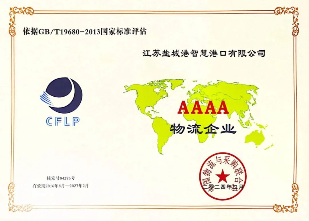 近日,由中國物流與采購聯合會主辦的“第七屆中國(合肥)物流與供應鏈金融創新發展大會暨37屆物流企業授牌大會”在安徽合肥盛大召開,鹽城港智慧港口公司憑借出色的物流服務質量和規范化的運營水平,被評為“AAAA級物流企業”,不僅標志著智慧港口公司在規范化、標準化運營方面已達到國家標準,物流服務模式得到了行業的高度認可,也為公司進一步發展和提升品牌影響力奠定了堅實的基礎。