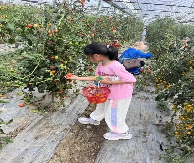 采摘環節無疑是孩子們最期待的部分。果園里五顏六色的小番茄、黃澄澄的香梨、紅彤彤的大蟠桃綴滿枝頭,孩子們穿梭在果園中,盡情享受采摘的樂趣,果園里充滿了孩子們的歡聲笑語,收獲的喜悅處處洋溢。