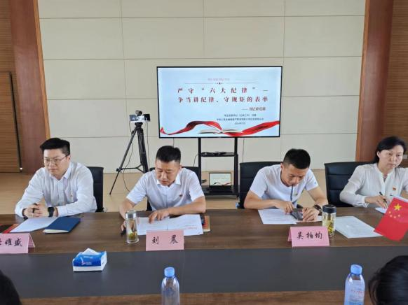 結合黨紀學習教育,資產公司黨總支書記帶領黨員及積極分子學習《中國共產黨紀律處分條例》,為全體黨員講授專題黨課《嚴守六大紀律——爭當講紀律、守規矩的表率》,加強黨的紀律建設,增強廉潔意識,教育引導全體黨員知敬畏、存戒懼、守底線,切實做到知紀于心、履紀于行、守紀于常,真正做到知行合一,永葆共產黨員初心使命。