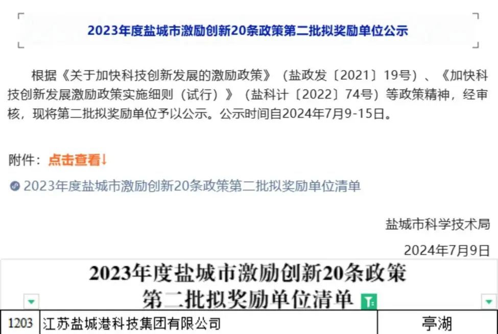 圍繞高新技術產品認定要求,高水準、嚴論證,不斷提升產品技術水平,以“實用實效實踐”為原則,創新創優。同時,深刻把握國家科技政策導向,用足用活用好高企等優惠政策福利,成功獲批高新技術產品認定,入選2023年度鹽城市激勵創新20條政策第二批擬獎勵單位名單,并完成市工程技術研究中心、省質量信用A級企業申報,標志著鹽城港集團在科技創新和產業發展方面登上新臺階。