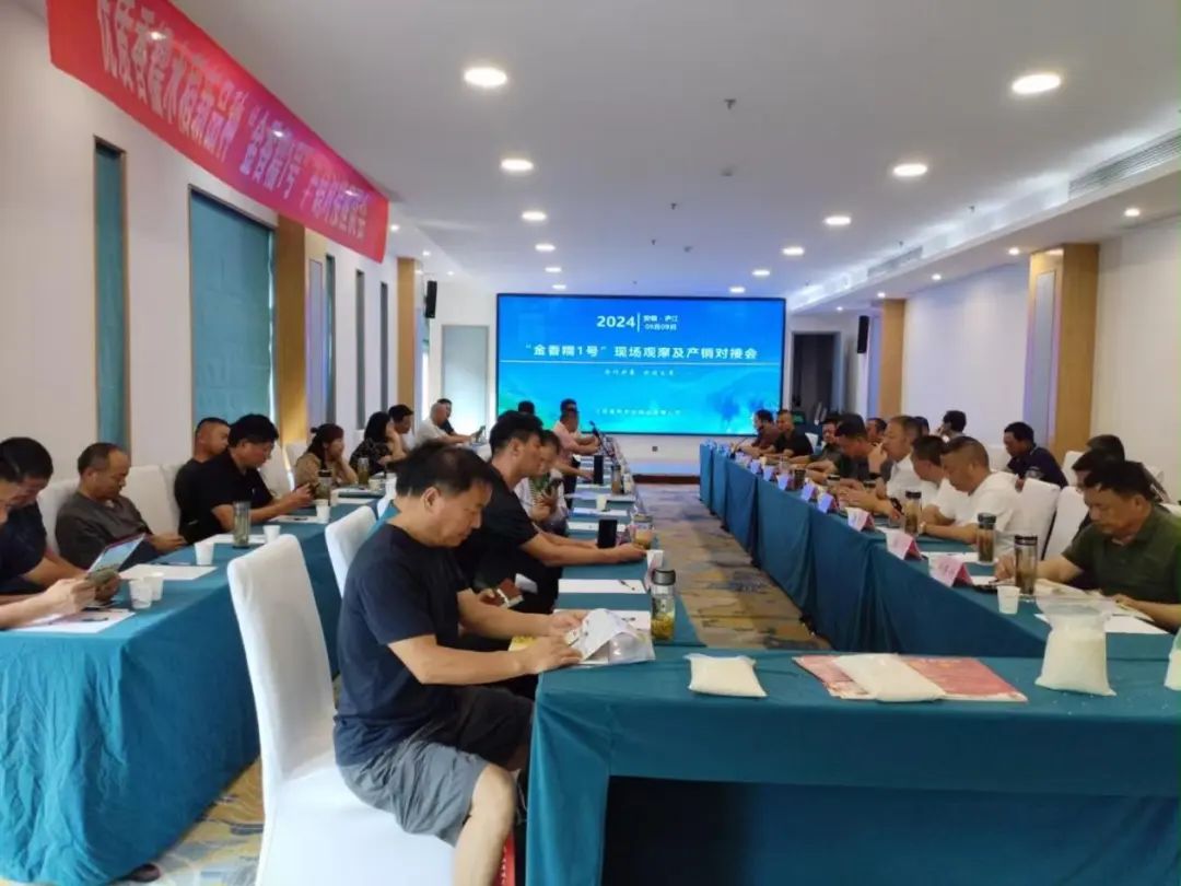 近日,農(nóng)業(yè)科技集團在安徽省廬江縣召開水稻品種“金香糯1號”現(xiàn)場觀摩暨產(chǎn)銷對接會。來自江蘇和安徽的種子經(jīng)銷商、種植大戶、稻米加工企業(yè)負責(zé)人以及糧食經(jīng)銷商齊聚一堂,共同探討“金香糯1號”訂單種植產(chǎn)銷對接合作事宜。