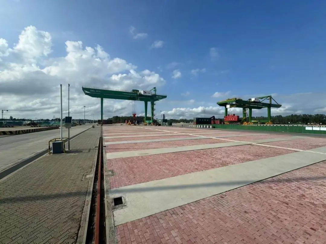 “紅花當然配綠葉”。在高質量、高標準完成該項目的同時,集團總工辦與陸港項目團隊在細節處亦是別具匠心,為集裝箱堆場中新增的門式吊機進行了新的綠色涂裝。平整堅實的紅色堆場與高大可靠的綠色門機在藍天白云的映襯下不但展示了鹽城港人建設美麗港口的初心使命;也展現出了鹽城港人大膽的創新精神和在項目施工上精益求精的專業素養。