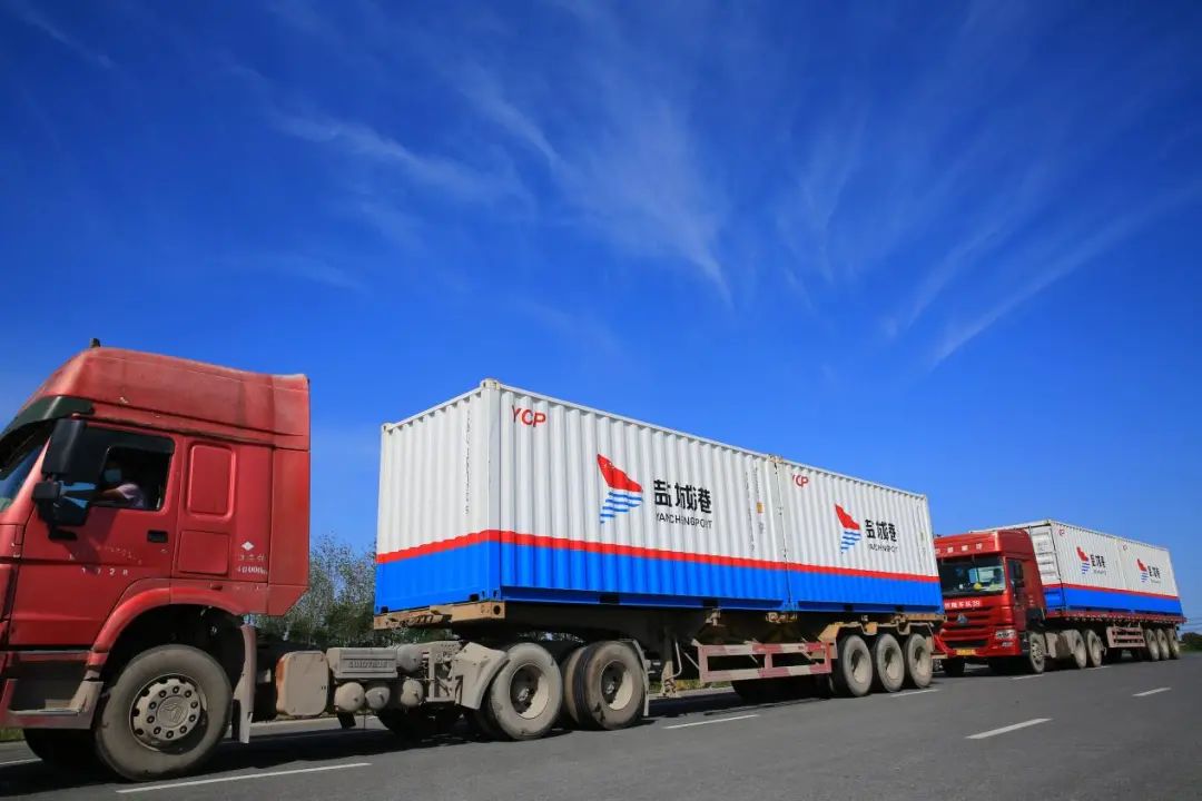 堆場上,堆積如山的集裝箱在秋陽的映照下,閃耀著迷人的光澤。碼頭門機忙碌地吊運著,與秋天的寧靜形成了鮮明的對比。