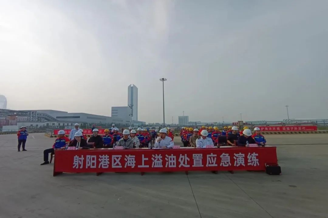 以上情景并非真實(shí)發(fā)生的事故,而是射陽港區(qū)聯(lián)動(dòng)射陽海事處、中鐵廣州局項(xiàng)目部、國能新能源模擬海上突發(fā)溢油應(yīng)急處置演練中的場(chǎng)景。