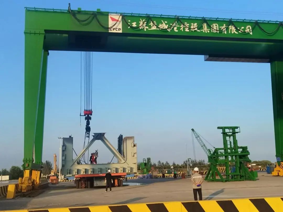 11月3日,伴隨著震耳欲聾的汽車聲,一組“龐然大物”抵達阜寧港作業區進行吊裝作業,大件長9.2米,高10.8米,重達150噸。再次刷新了鹽城港內河港口大件裝卸紀錄。