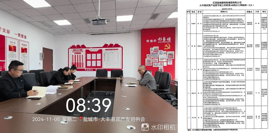 大豐港區資產運營管理專班共組織召開工作推進會3次,針對資產資源布局現狀、運作模式,兼顧在手工作的同時結合各成員業務特長,對所有成員分工進行了明確。為提高工作質效和提升大家綜合能力水平,各項工作均設置“AB”雙人雙崗模式。形成定期例會制度,每周集中大家交流工作經驗、商討工作思路、研究拓展市場措施,全力保障專班工作高效運轉。