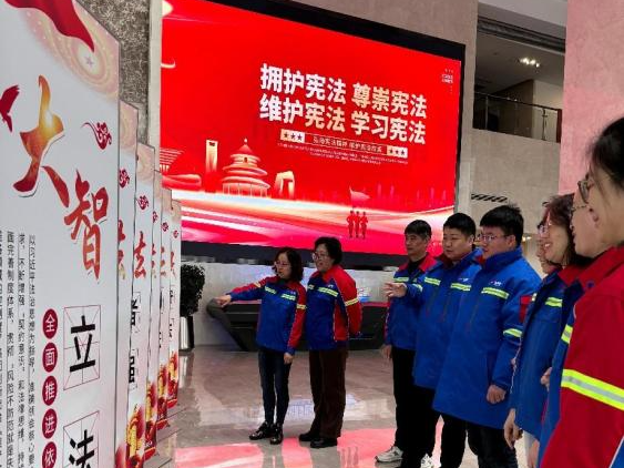 公司內外的法治宣傳展板、橫幅吸引了眾多目光,讓員工在駐足觀看的同時,對法律有了更直觀的認識。同時,通過觀看以憲法為主題的法治宣傳片、“大家”講憲法等形式,讓員工在工作之余也能享受到法治文化的熏陶。