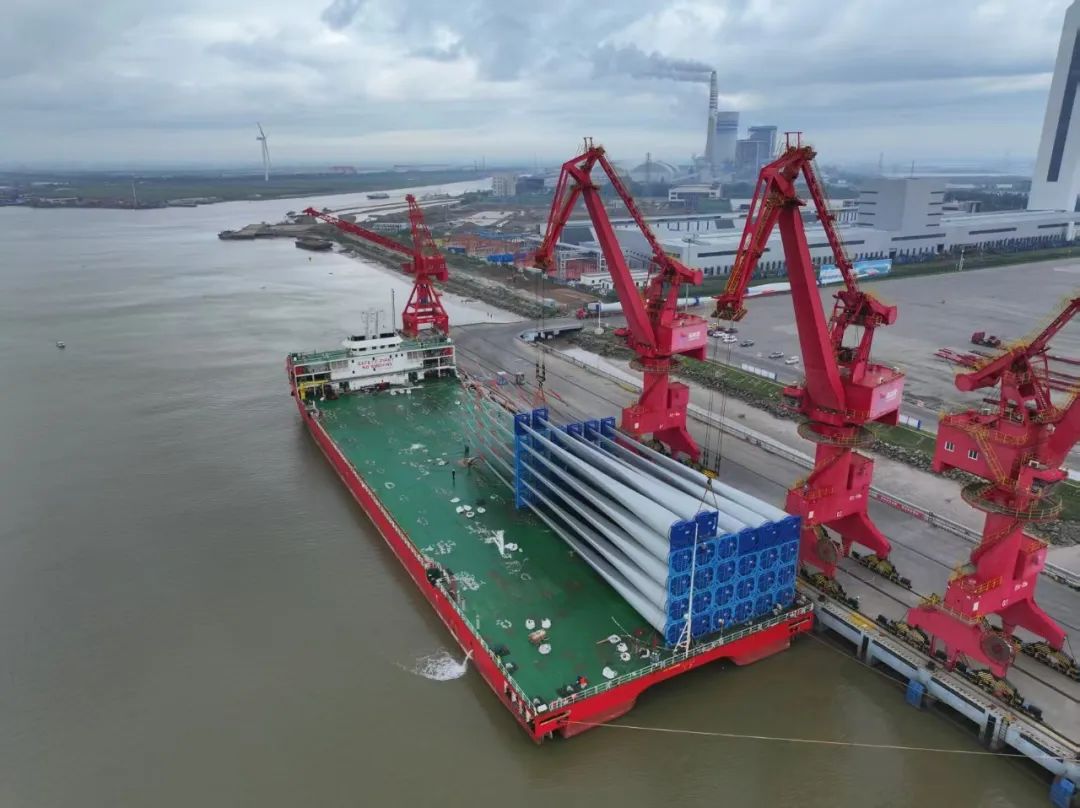 據悉,此次葉片出口項目是遠景能源出口至印度坎德拉港EN-156項目的第5船,裝載量達到20套60片,射陽港區風電公司與業主單位反復溝通并根據碼頭實際情況,連續攻克堆碼數據驗證、作業中雙機聯動半徑實驗與集港運輸數據可行性驗證等技術壁壘,確保作業方案科學有序。