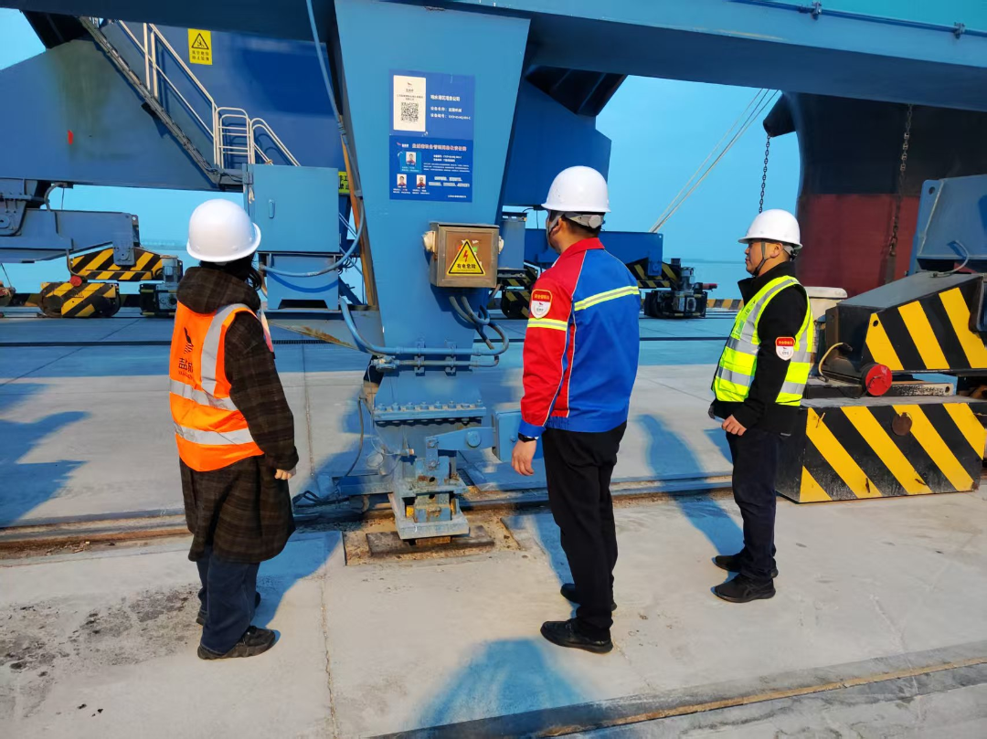 在大風到來之前,對大型設備進行全面錨定。全部工作完成后,響水港區采用“三級聯檢”機制,即操作人員自檢、班組長復檢、領導班子終檢,逐臺設備檢查驗收,確保每一臺設備固定都達到防風要求。