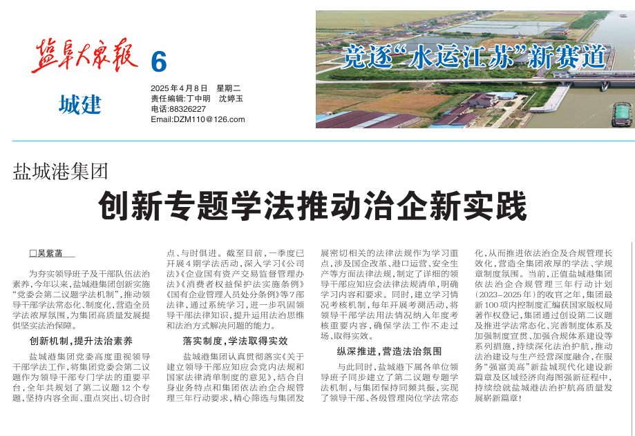 為夯實(shí)領(lǐng)導(dǎo)班子及干部隊(duì)伍法治素養(yǎng),今年以來(lái),鹽城港集團(tuán)創(chuàng)新實(shí)施“黨委會(huì)第二議題學(xué)法機(jī)制”,推動(dòng)領(lǐng)導(dǎo)干部學(xué)法常態(tài)化、制度化,營(yíng)造全員學(xué)法濃厚氛圍,為集團(tuán)高質(zhì)量發(fā)展提供堅(jiān)實(shí)法治保障。