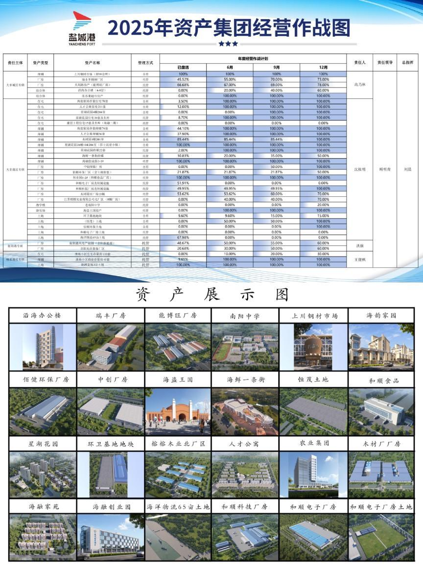 資產集團將深耕資產資源調優,以“提升專業化、構建體系化、推進市場化”為手段,不斷提升資產運營能力,為譜寫鹽城港集團高質量發展新篇章貢獻資產力量。