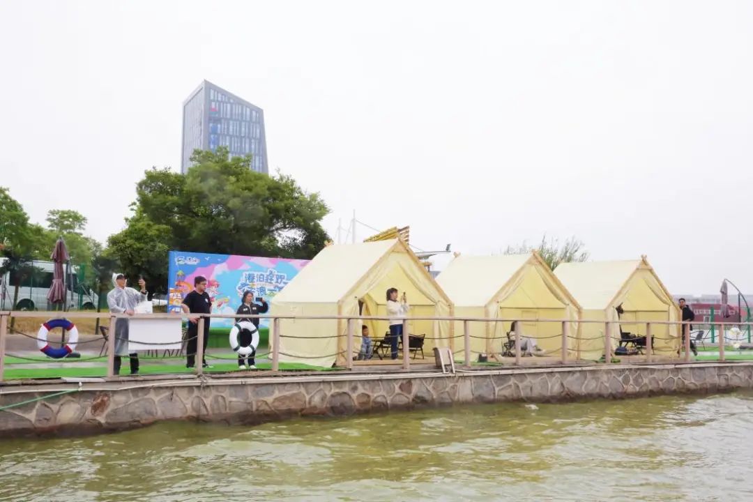 除了驚險刺激的水上項(xiàng)目,文旅集團(tuán)還為游客們準(zhǔn)備了豐富多彩的休閑體驗(yàn)。日月湖畔,一頂頂帳篷錯落有致,游客們可以走進(jìn)帳篷,稍作休息,靜靜感受湖畔的微風(fēng)輕拂。莎士比亞國際商貿(mào)小鎮(zhèn)里,一首首動聽的歌曲悠揚(yáng)起伏,游客們伴隨歌聲漫步在小鎮(zhèn)上,感受各個場館的異域風(fēng)情,足不出戶,便能購遍全球好物。