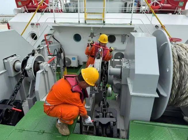 拖輪作業(yè)的成敗始于精細(xì)準(zhǔn)備。作業(yè)開始前,鹽城港拖輪服務(wù)公司全面結(jié)合船舶噸位、潮汐數(shù)據(jù)及碼頭環(huán)境,聯(lián)動引航站,依托智能化系統(tǒng)制定最優(yōu)作業(yè)方案;嚴(yán)格全面排查主機(jī)、舵系、纜繩等關(guān)鍵設(shè)備,確保“零隱患”運行;實時追蹤風(fēng)浪、能見度及洋流變化,動態(tài)調(diào)整作業(yè)窗口期,在極端天氣下堅決堅持“寧停三分,不搶一秒”原則。此外,組織全員進(jìn)行方案推演,明確拖帶點位、通訊指令及應(yīng)急預(yù)案,將安全標(biāo)準(zhǔn)滲透至每個環(huán)節(jié),為高效協(xié)同奠定基礎(chǔ)。