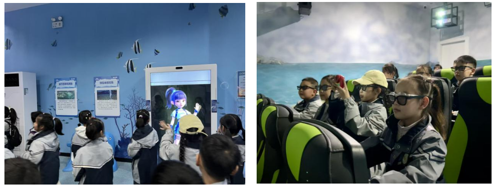 告別課本的平面描繪,步入海洋世界科技館的沉浸式實景,斑斕的魚群在全息投影中翩然游動,憨態可掬的虛擬海獸自頭頂悠然滑過。曾經書頁上靜止的海洋生物插圖,此刻化作光影中靈動的數字生命。