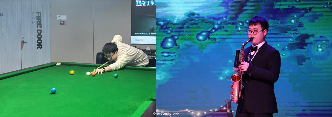 工作之余,斯諾克是我智慧的戰場,在長達三米的臺面上,我享受精準走位與策略布局的博弈,每一桿擊球都是對耐心與技術的極致考驗。而薩克斯則是我靈魂的樂章,當金銅色的旋律流淌而出,我仿佛能穿越時空,用一個個音符編織我內心的情感,讓悠揚又激昂的旋律直擊人心。斯諾克鍛煉我的思維,薩克斯滋養我的心靈,兩者相輔相成,讓我在理性與感性間自由切換,生活因此更加豐富多彩。