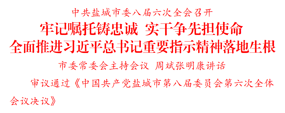 12月26日,中國共產黨鹽城市第八屆委員會第六次全體會議召開。全會堅持以習近平新時代中國特色社會主義思想為指導,以習近平總書記來鹽城考察為強大動力,按照中央經濟工作會議和省委十四屆五次全會、省委經濟工作會議部署要求,總結今年工作,部署明年重點任務,動員全市上下傳承發揚不怕困難、不畏艱險,勇于斗爭、敢于勝利的精神,扎實推進“四個三”工作布局,在中國式現代化鹽城新實踐中實干爭先。