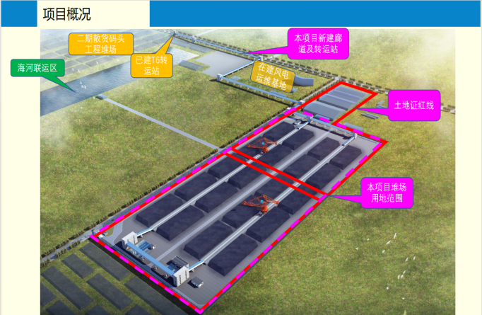 該項目陸域用地面積25.03萬㎡,其南北向縱深約736.83米,東西向寬度則約為318.97米。作為大豐港區重點工程的一部分,該項目從二期散貨堆場已建的T6轉運站預留的2路皮帶機接口延伸而來,旨在通過T6轉運站皮帶機的延伸及大豐港現有臨時堆場用地范圍內相應配套設施的建設,進一步提升港口的功能性和效率。