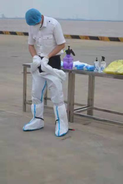 活動中,黨總支書記韋林和作培訓(xùn)動員,鹽城海關(guān)駐大豐港辦事處領(lǐng)導(dǎo)對港口作業(yè)人員宣講了常態(tài)化防疫管理對港口作業(yè)的重要性,專班工作人員就規(guī)范穿脫防護(hù)服、醫(yī)療廢棄物垃圾袋消毒和鵝勁式包扎流程進(jìn)行了示范操作。