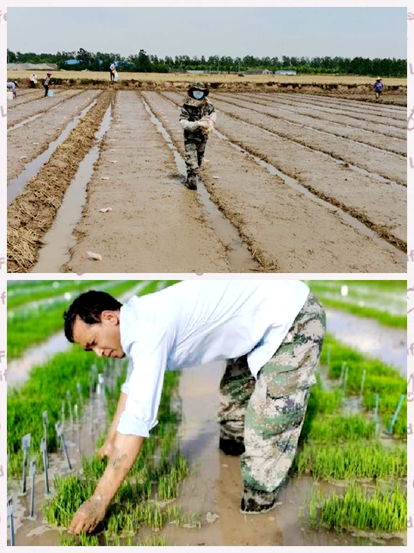 到了6月份,是水稻插秧的時節了。他作為一線的科研育種人員經常趕著早霞下田,披著晚霞下班。為了趕插秧進度他經常赤腳在水田里奔走,滿身泥水,汗流浹背,為了防止發生錯亂,3千多份水稻育種材料每一份他都要認認真真盯好。幾天下來他腰酸背痛,甚至穿著雨鞋腳上也磨破了皮。但他毅然堅守著,直到所有的水稻育種材料全部栽插結束,他才能短暫地舒一口氣。他秉著不忘初心的職責,不怕困難,甘愿吃苦!