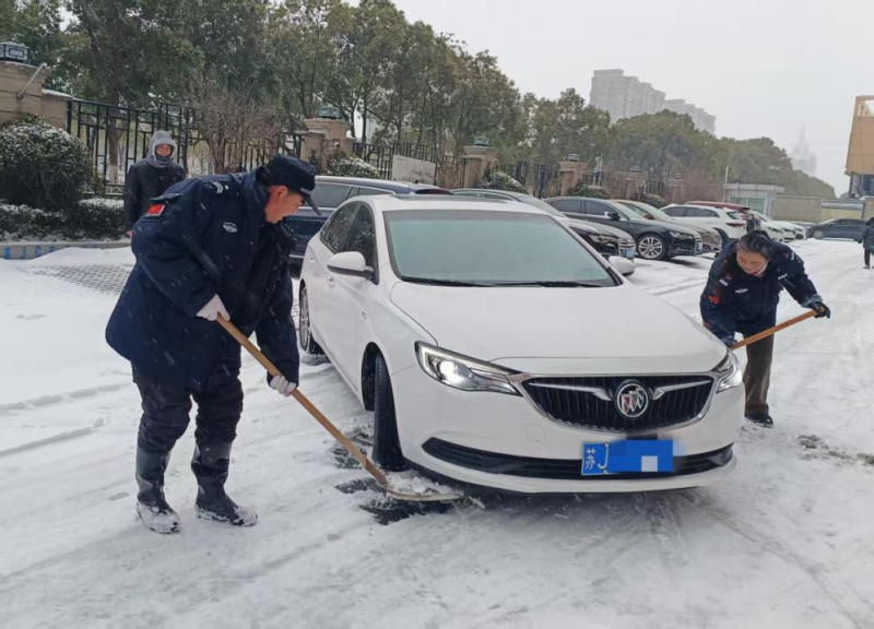 持續雨雪冰凍天氣,氣溫驟降至零下,道路積雪結冰給群眾出行和校園安全帶來嚴峻考驗。鹽港物業第一時間響應,在居民小區,工作人員頂風冒寒,手持鐵鍬、掃帚在晨光熹微中集結,分工協作清掃樓門通道、地下車庫坡道等關鍵區域。物業客服、保潔部門的女員工組成“巾幗除雪隊”,清掃積雪后及時撒布融雪鹽,用“巾幗不讓須眉”的擔當守護每一位業主的出行安全。面對業主車輛打滑被困的突發狀況,工作人員火速上前,清掃冰雪、指揮調度,默契配合幫助車輛成功脫困,用及時援手傳遞服務溫度。